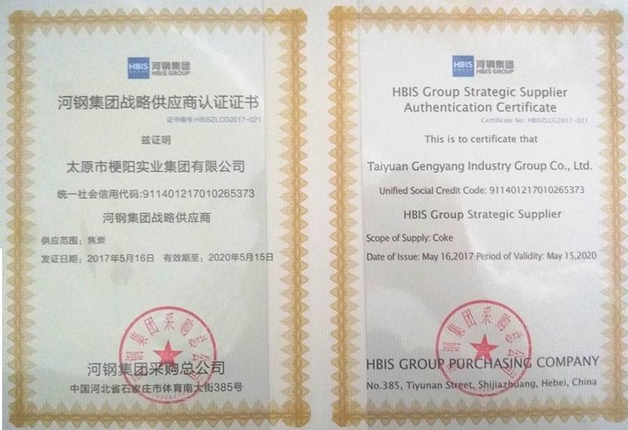 2016年度,太原市梗陽實(shí)業(yè)集團(tuán)有限公司在河鋼集團(tuán)的原燃料供應(yīng)占比、交付質(zhì)量、價(jià)格分析評(píng)價(jià)、響應(yīng)與協(xié)作服務(wù)等方面得到了高度認(rèn)可,被確定為首批“河鋼集團(tuán)優(yōu)秀供應(yīng)商”,并認(rèn)證為“河鋼集團(tuán)戰(zhàn)略供應(yīng)商”。